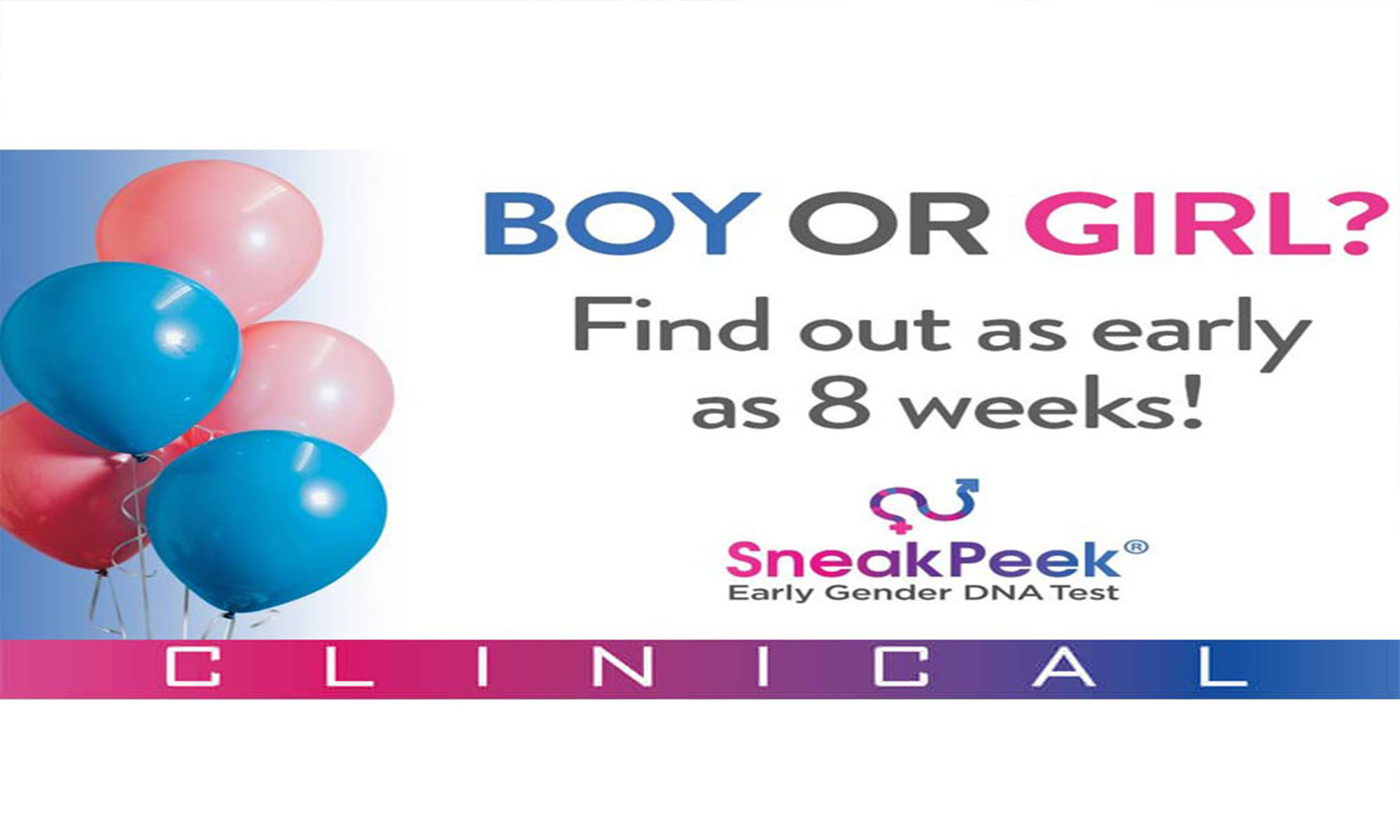 SneakPeek Clinical is an early gender DNA test that offers next-day results. All participants will be serviced by the on-site, licensed phlebotomist in our ultrasound studio’s private and comfortable rooms. As early as eight weeks, shared fetal DNA is circulating in a mother's bloodstream. The phlebotomist will extract a blood sample and immediately send it back to SneakPeek labs for the fastest turnaround time for results in the industry.